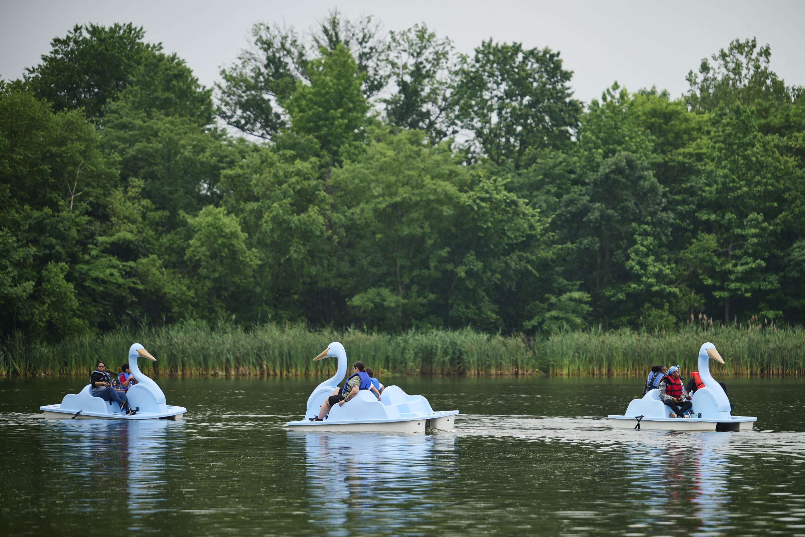 Enjoy free paddle boating on FDR Park’s Edgewood Lake! Kid-friendly binoculars are provided so you can spot turtles, ducks, blooming flowers, and maybe even a great blue heron, the very bird the boats are designed to resemble. Stop by the boathouse for a 20-minute session; no pre-registration or experience needed.
