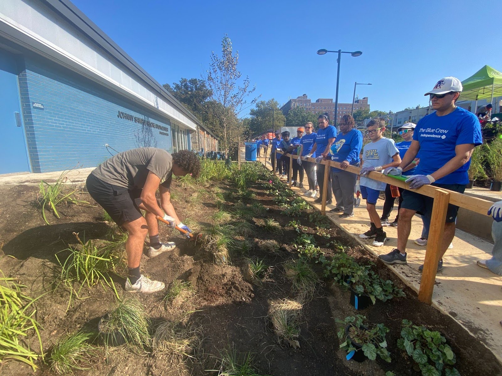 Lucas Brannen planting native species at the Cobbs Creek Johnny Sample Recreation Center.